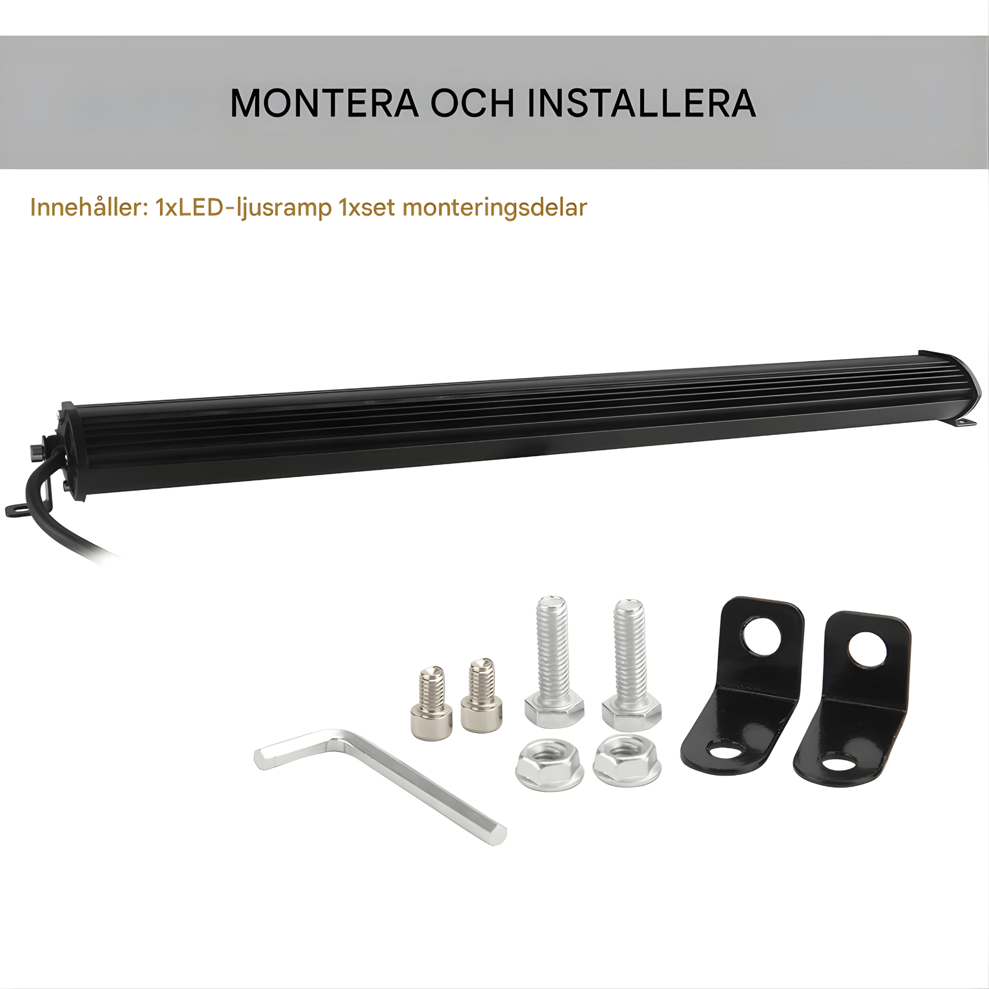 | Ingår | LED-ramp + monteringskit |