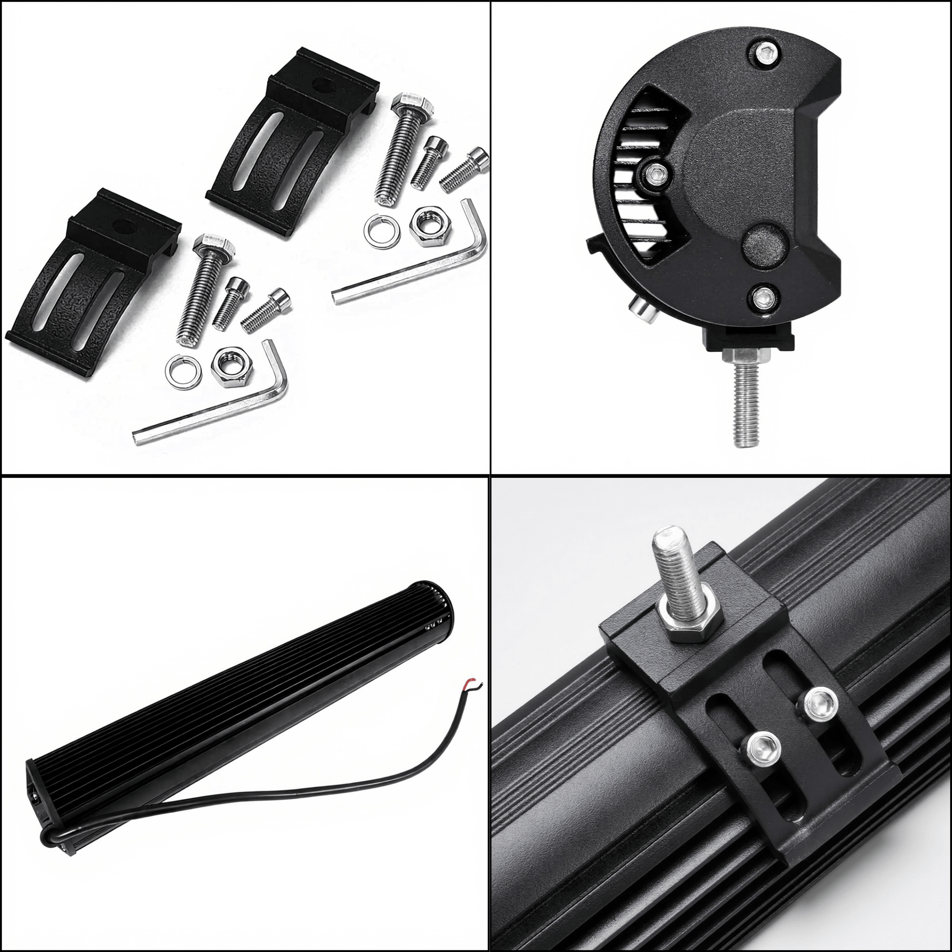 - Slutlig kontroll och justering - Finjustera vinkeln för optimalt ljusmönster. Dra åt alla skruvar hårt. Kör en kort provtur och kontrollera att inga vibrationer eller lösa delar förekommer.